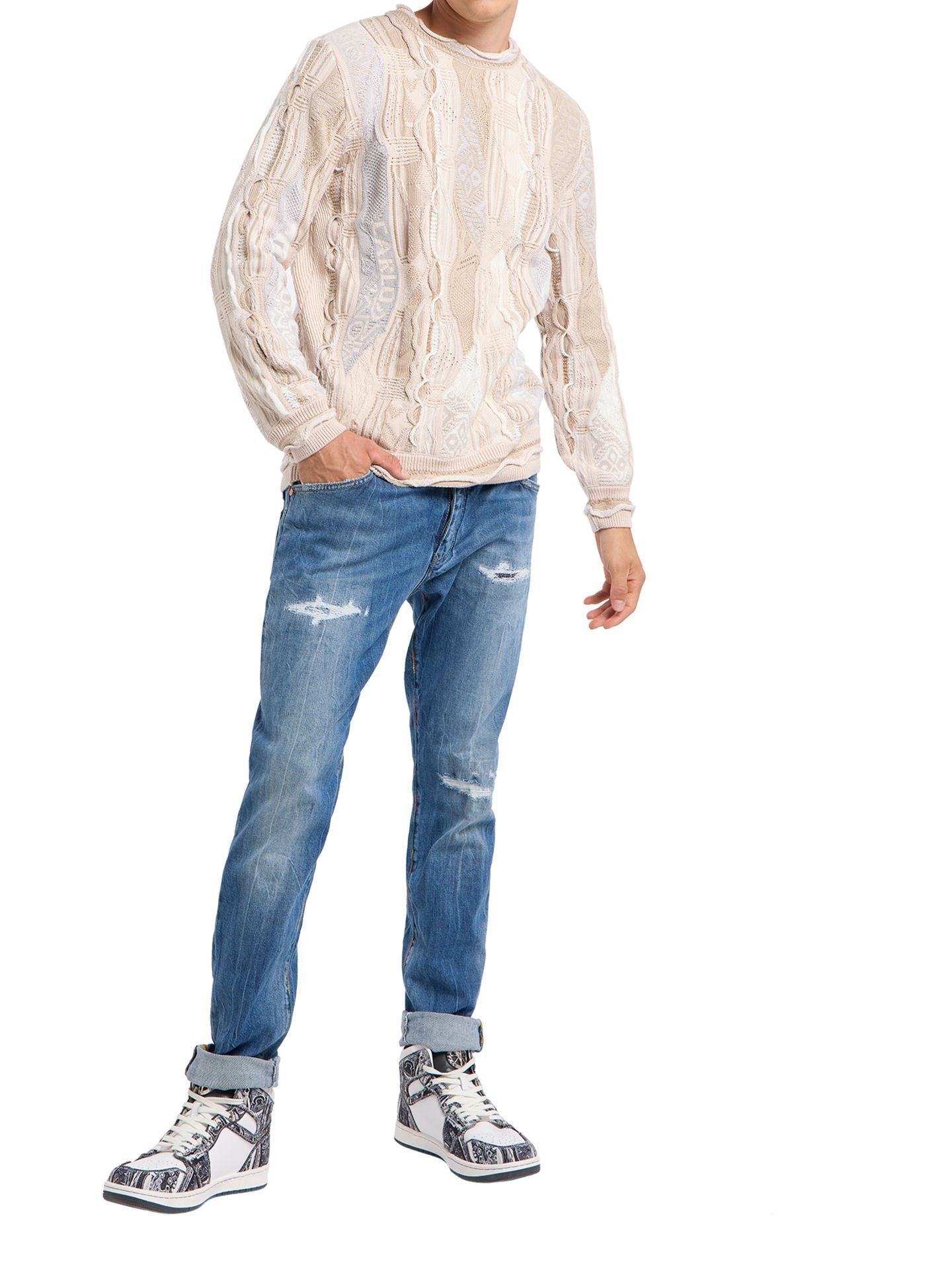 CARLO COLUCCI GEBREIDEN TRUI BEIGE ZAND.